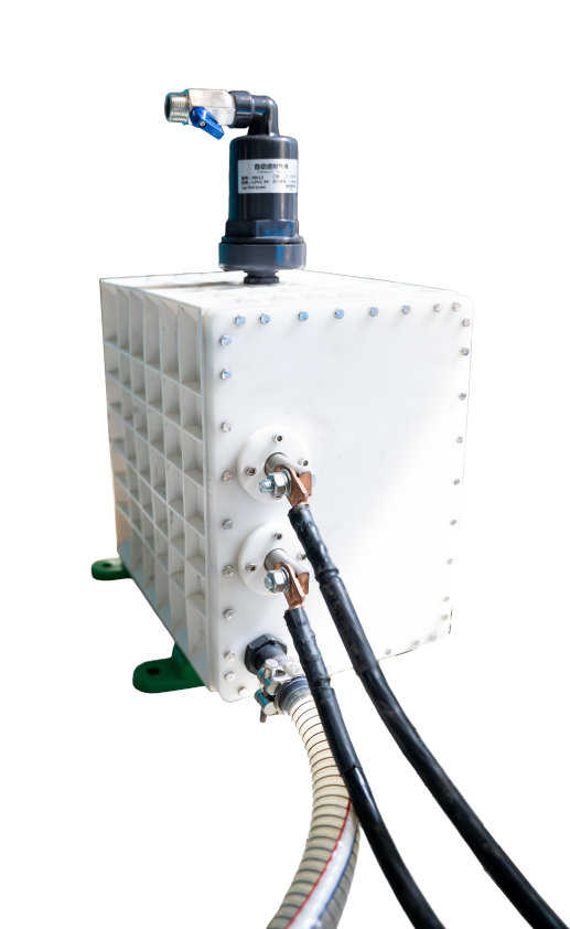 采用PP外壳并注塑一体成型,具有体积小、便于运输与安装的特点。设备配备标准进出水接口,可灵活进行串并联组合,满足大型污水处理工程的应用需求。其阴阳极与接线柱采用特种焊接工艺一体成型,连接稳定可靠。反应器配备专用电源,能够按设定时间间隔自动切换阴阳极,有效延长使用寿命并保持高效稳定的污水处理能力。