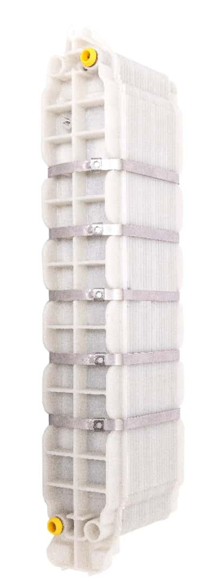 Aquacells EIMD-CP 膜堆可取代混床技术应用于凝结水精处理,可高温连续运行,产水电阻率大于 16 MΩ·cm且无需停机和再生。