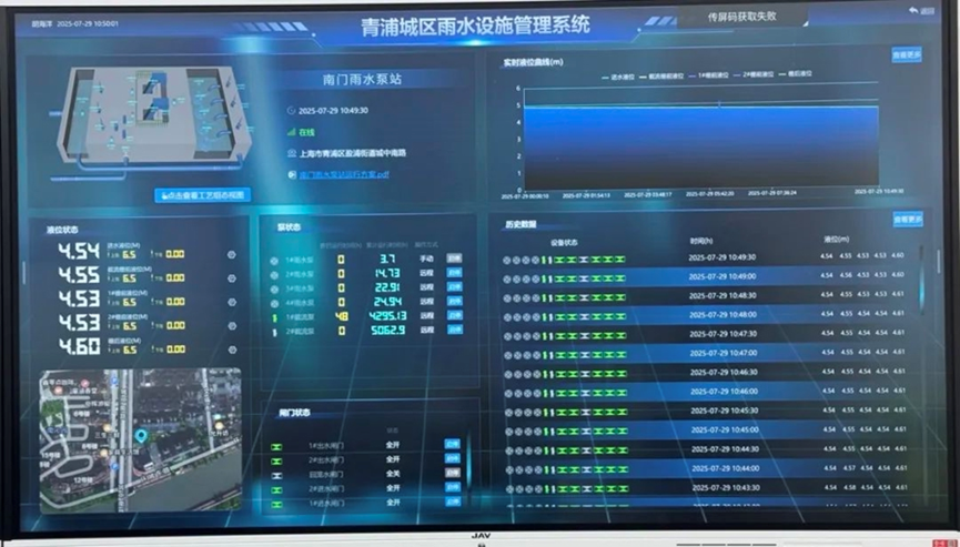 更值得关注的是智能调度系统的突破性应用。当7月29日暴雨峰值来临,黄浦区排水系统面临上游来水压力,中央控制系统自动生成调度方案:先开启成都路泵站强排降低主干管水位,再调度延中调蓄池收储20万立方米雨水,最后通过西藏南路泵站错峰排放。这种基于水力模型与AI算法的协同调度,使管网负荷始终控制在安全阈值内,避免了传统“各自为战”调度模式可能导致的局部溢流。