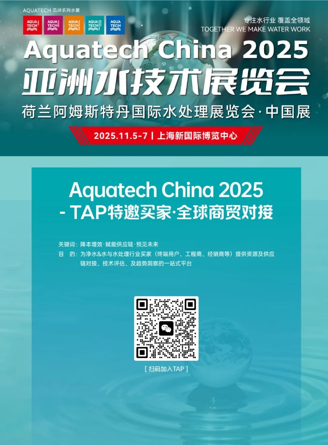为了汇聚行业智慧,分享前沿技术成果,交流实践经验,推动供排水行业的绿色转型,荷兰阿姆斯特丹国际水处理展览会·中国展暨Aquatech China 2025亚洲水技术展览会联合上海市净水技术学会、上海城市水资源开发利用国家工程中心有限公司于2025年11月5-7日在上海新国际博览中心共同举办“2025供排水绿色低碳节能技术与应用研讨会”。