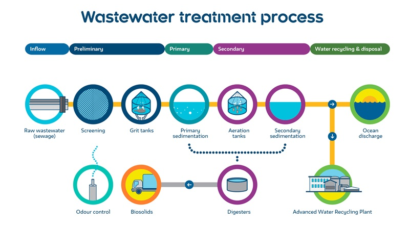 Wastewater treatment involves extensive sewer networks spanning thousands of kilometres, varying in size across regions and countries. Once wastewater reaches treatment plants, four stages include 污水处理涉及到绵延数千公里的庞大的排污管网,具体因国家和地区而异。污水进入处理厂后,将经过以下四个处理阶段: