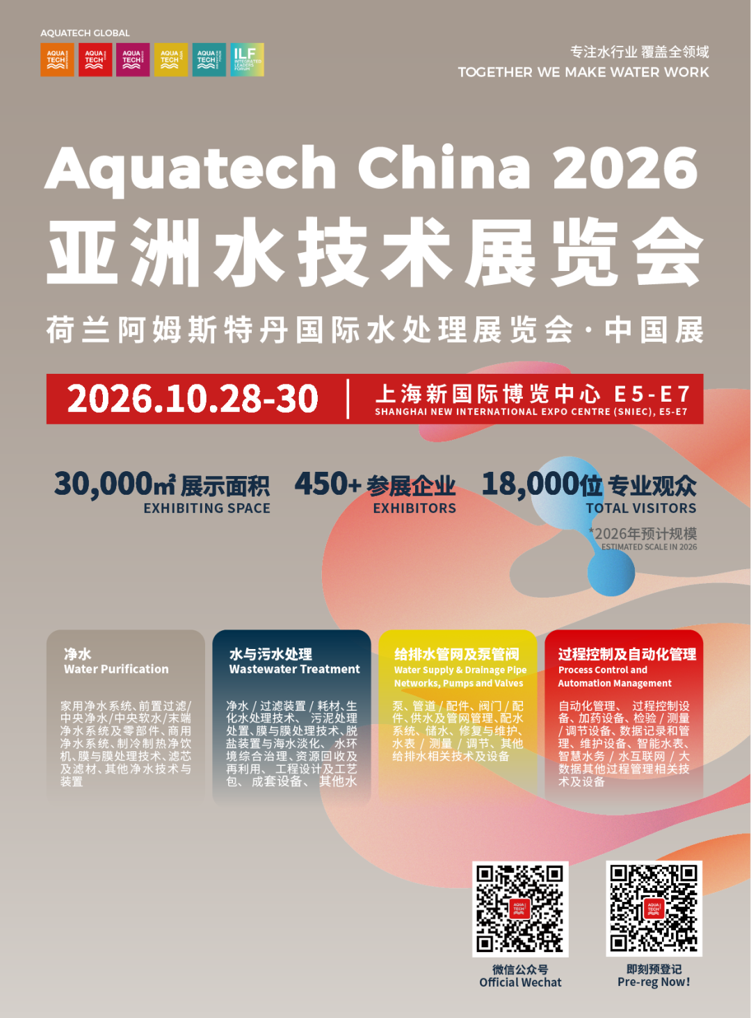 荷兰阿姆斯特丹国际水处理展览会·中国展暨Aquatech China 2026亚洲水技术展览会将于2026年10月28-30日在上海新国际博览中心盛大举办。